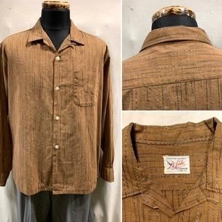 50s 黒白ねじれネップ織り ストライプ 長袖シャツ シャツ ロカビリー ヴィンテージ 1950年代 コットン