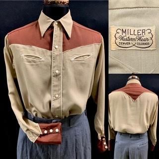 40s 50s MILLER ツートーン 切替 ウエスタンシャツ マチつき ギャバジン ギャバシャツ ギャバ ヴィンテージ 1950年代 ロカビリー