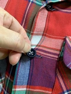 ボタンは樹脂の皿ボタンで、なんと紺色です。