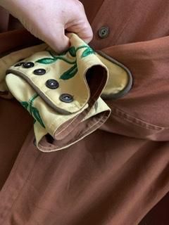袖口にも、胸の切替にも、ポケット部分にも、他の色のパイピングが施されています。