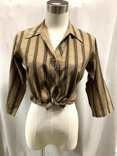 50s イタリアンカラー レディース シャツ 綿 ブラウス ヴィンテージ グラデーションストライプ 1950年代