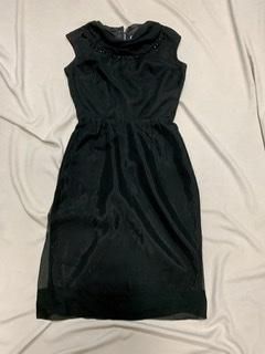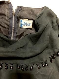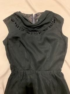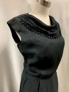 50s 揺れる ドロップビーズ シフォン 黒ドレス ノースリーブ ロールネック ワンピース 黒 ブラックドレス 黒ワンピース ヴィンテージ 1950年代 結婚式
