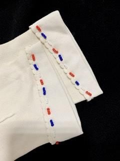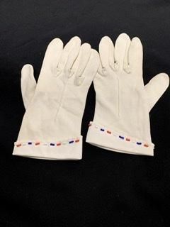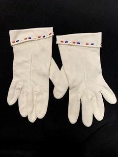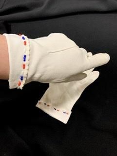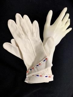 トリコロールのビーズ刺繍の飾りがついたグローブです。