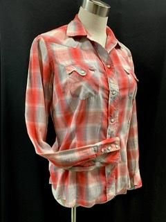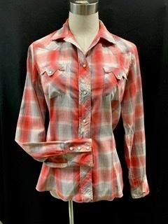 50s レディース 赤 ウエスタンシャツ ヴィンテージ ロカビリー 1950年代 シャドーチェック グラデーション シャツ ブラウス