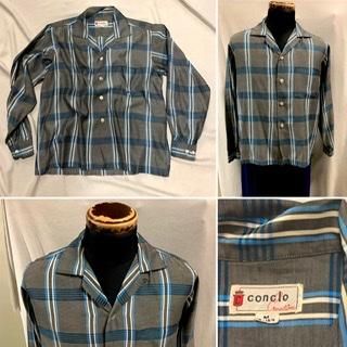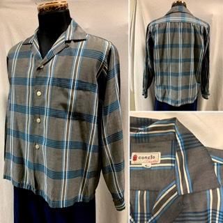 50s CONCLO 黒シルバー 光沢 ロカビリーシャツ ヴィンテージ 1950年代 アセテート レーヨン 長袖シャツ シャツ