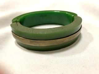40s 金属の飾りがついたベークライトのブレスレットです。