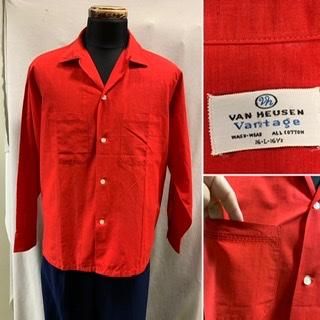 50s 60s VAN HEUSEN 赤 シャツ ヴィンテージ コットン 綿 1950年代 ボックスシャツ オープンカラーシャツ
