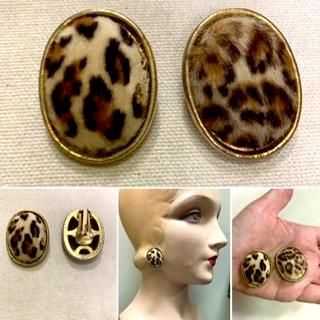 ヒョウ柄 イヤリング ハラコ フェイクファー エコファー ヴィンテージ アクセサリー USA アンティーク