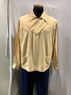 40s 50s V字 切替 プルオーバー シャツ Hollywood Roque ギャバシャツ ギャバジン 長袖シャツ プルオーバーシャツ