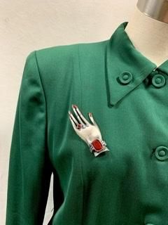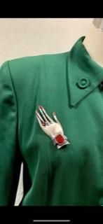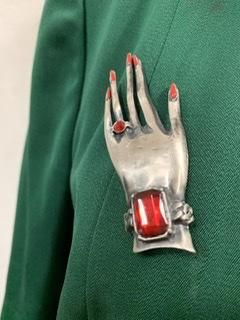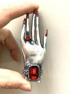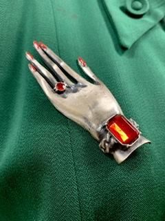 赤 ラインストーン 手 ブローチ ヴィクトリアン ハンド ピン アクセサリー ヴィンテージ