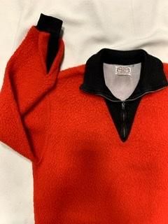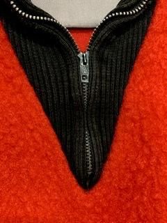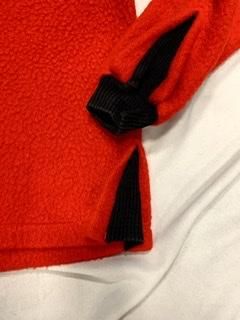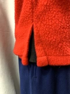 本体の赤の部分は、昔のフリースみたいな生地です。
