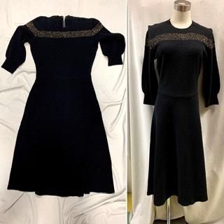 30s 40s 黒 ゴールド ニットドレス ワンピース ニットワンピース ヴィンテージ 1930年代 1940年代