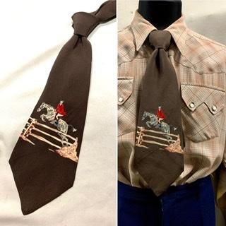 40s ほぼ未使用 幅広 馬 ネクタイ ヴィンテージ 1940年代 1950年代 50s カウボーイ 乗馬 ウエスタンシャツ ウエスタンタイ ウエスタンネクタイ