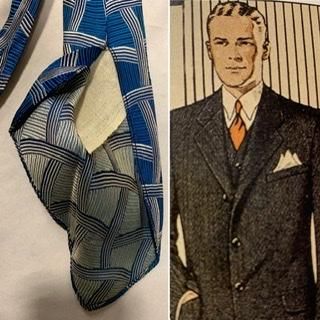30s 40s 青 シルバー ブルー系 ネクタイ ヴィンテージ 1930年代 1940年代