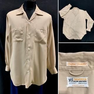 50s (Lサイズ)ギャバジンシャツ ハンドステッチ SKIPPER Wilson Brothers ギャバシャツ ヴィンテージ 1950年代 ベージュ シャツ 長袖シャツ