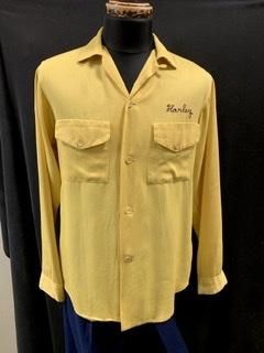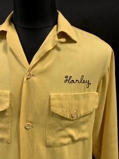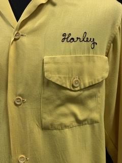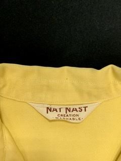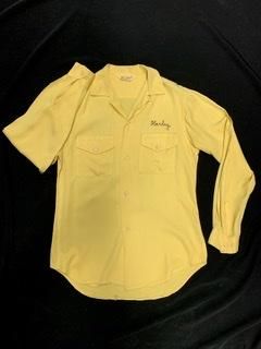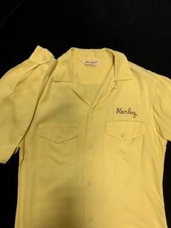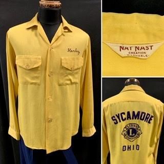 40s 50s 黄色×むらさき NAT NAST ギャバシャツ 長袖ボーリングシャツ ヴィンテージ ギャバジン 1940年代 1950年代 フロッキープリント 長袖シャツ ギャバジン