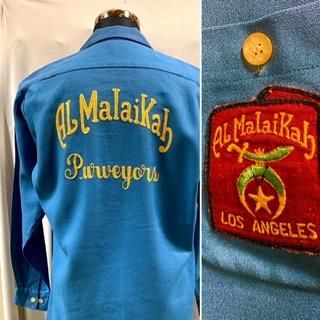 40s 50s バック刺繍 ギャバシャツ フリーメイソン シュライナー 長袖ボーリング ボーリングシャツ ヴィンテージ 1940年代 1950年代 チェーンステッチ