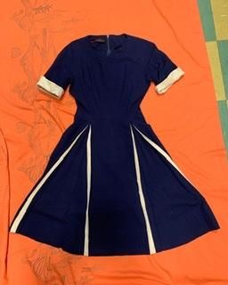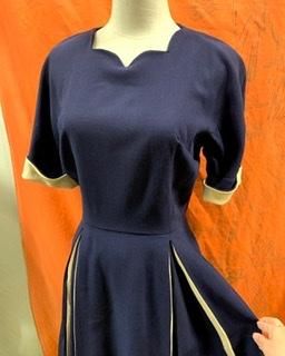 40s 50s スカラップ 紺色 白い 切り替え ワンピース ヴィンテージ 1940年代 1950年代