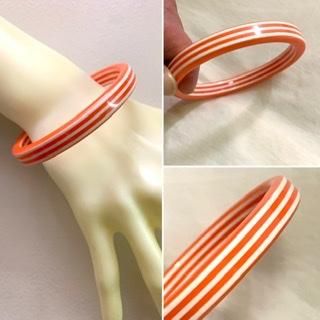 50s 60s オレンジ白 キャンディストライプ バングル ルーサイト ブレスレット ヴィンテージ アクセサリー ストライプ