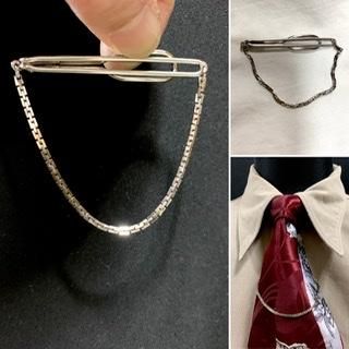 40s SWANK カクカク 揺れる スクエアチェーン ネクタイピン ヴィンテージ タイバー シルバー スワンク