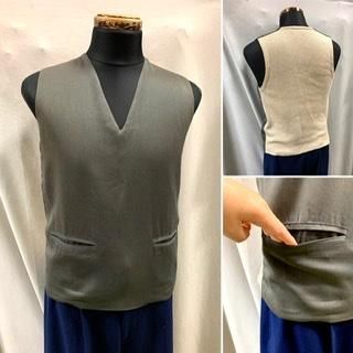 40s 50s Vネック ベスト ギャバジンベスト ギャバベスト ヴィンテージ 古着 プルオーバー 1950年代 背中ニット ジレ