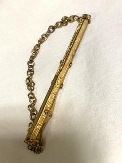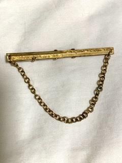 20s 30s アールデコ 十字に彫刻 40s チェーンつき ネクタイピン タイバー チェーン ヴィンテージ アンティーク ゴールド チェーン タイピン