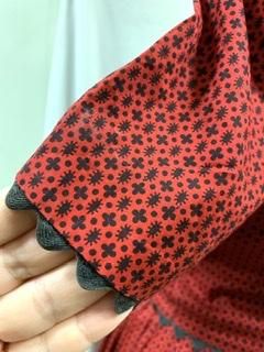 ネックライン、袖口、背中、ウエスト切替の部分に