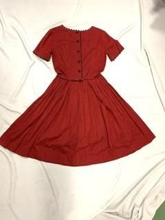 50s 赤黒ワンピース ヴィンテージ 1950年代 Dallas ダラス サーキュラースカート サーキュラーワンピース ワンピース コットンワンピース 黒ライン