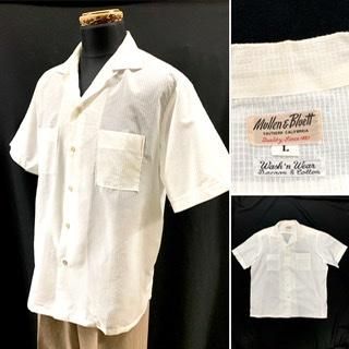 50s 白 半袖シャツ オープンカラーシャツ Mullen &Blvett 解禁シャツ ヴィンテージ 古着 1950年代 白シャツ