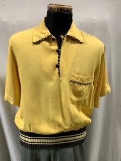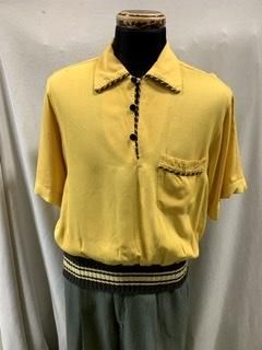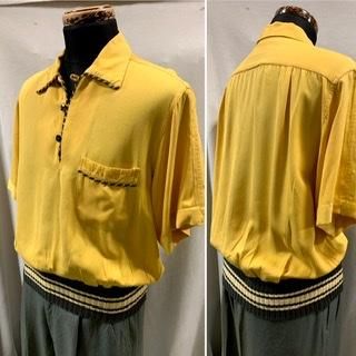 50s ギャバジン プルオーバー リブシャツ CAMPUS キャンパス 1950年代 ロカビリー ギャバシャツ ヴィンテージ 黄色×黒 ツートーン 古着 半袖シャツ