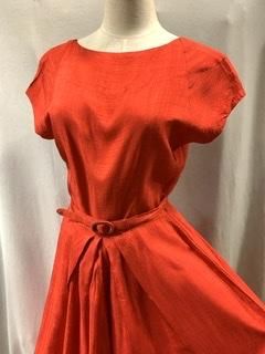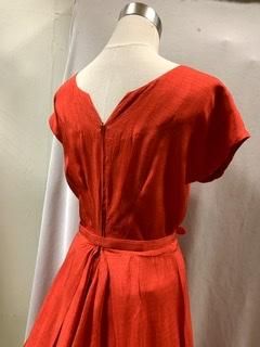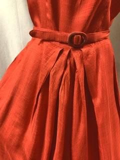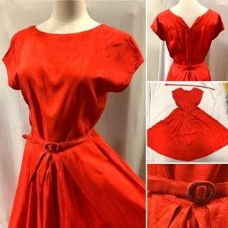 40s 50s 背中がV字 ベルトつき 赤ドレス ワンピース 赤 レッド ドレス 光沢 シャンタン レーヨンワンピース レーヨンドレス ヴィンテージ 1950年代