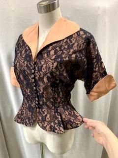 40s ペプラム ジャケット 総レース ヴィンテージ ボレロ 50s 1940年代 1950年代 クラシカル ボレロ 黒 オレンジ 半袖ジャケット