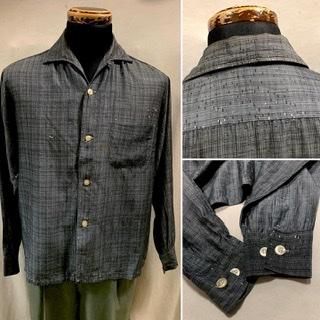 50s pilgrim イタリアンカラー シャツ カスリネップ かすり ヴィンテージ 古着 60s ロカビリーロカビリーシャツ 1950年代 50年代 黒シャツ