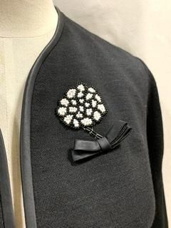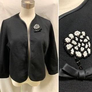 50s 60s 黒 ノーカラー ジャケット ボレロ ヴィンテージ 黒白 ニットジャケット カーディガン 1950年代 1960年代