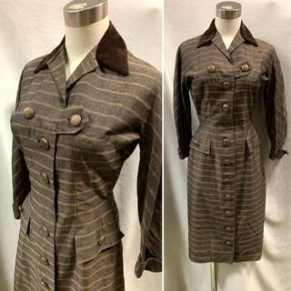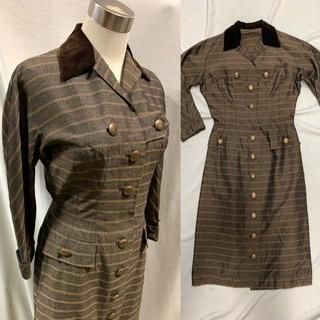 40s 50s ロングポイント 切替 ワンピース ペンシルドレス タイトワンピース ヴィンテージ 1940年代 タイトスカート ペンシルスカート