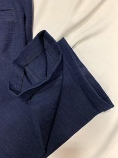 濃紺ベースに、赤やブルーのカスリが全体的に入っています。