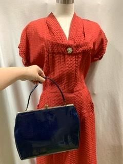 60s 大きめ ハンドバッグ USA Spilene ヴィンテージ 1960年代 濃紺ラメ 1960年代 バッグ かばん カバン
