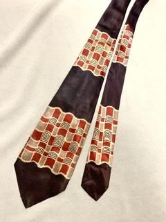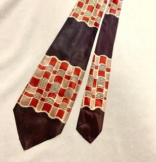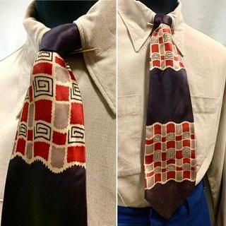 40s 50s 幾何学模様 むらさき✖️赤 ネクタイ ヴィンテージ ナス紺 1940年代 1950年代 ロカビリー swing