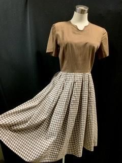 50s key hole キーホールネック ワンピース ヴィンテージ サーキュラースカート 1950年代 ギンガムチェック ブラウン