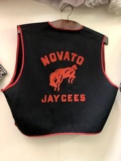 40s 50s 黒赤 ギャバジン ベスト ヴィンテージ フロッキープリント NOVATO JAYCEES 1950年代 ジレ