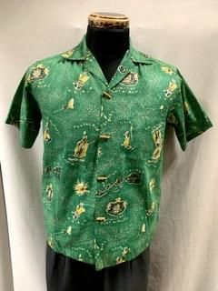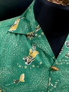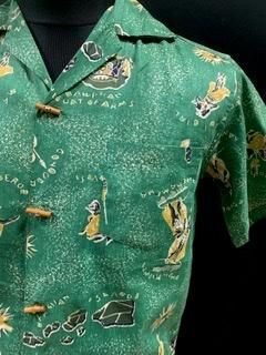50s 紙タグつき バンブーボタン ハワイアンシャツ 竹ボタン made in Hawaii ヴィンテージ アロハ アロハシャツ デッドストック 1950年代 カメハメハ大王 ハワイ製
