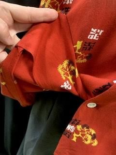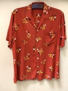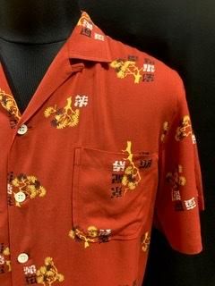 50s 和柄 レーヨン 総柄 半袖シャツ ロカビリー ヴィンテージ 1950年代 赤 松 ハワイアンシャツ
