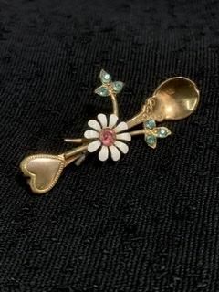 1930年代 スイートハート スプーン ブローチ アンティーク アクセサリー ヴィンテージ 30s 40s スウィートハート ゴールド お花