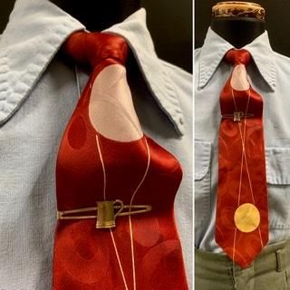 40s 50s X ワインレッド 透かし模様 大きなドット 丸 ネクタイ ヴィンテージ Mr.T 大きな水玉