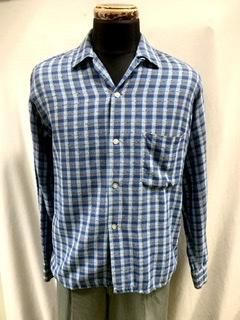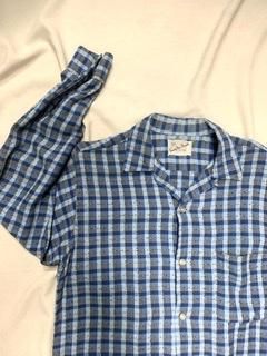 50s 黒白ねじれネップ Sandy McDonald レーヨンシャツ ヴィンテージ ロカビリー サンディーマクドナルド 1950年代 ブルー チェック