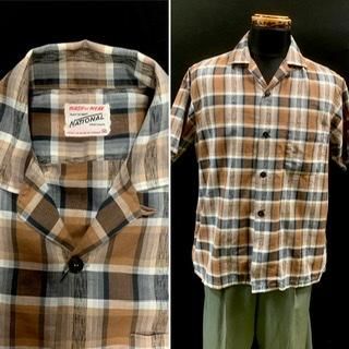 50s National カスリ ロカビリーシャツ ヴィンテージ コットン 半袖シャツ 1950年代 ナショナル