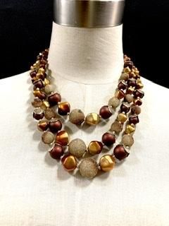 50s 60s 3連ネックレス ヴィンテージ ブラウン ゴールド アクセサリー アンティークジュエリー