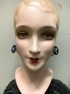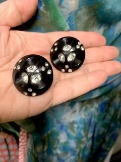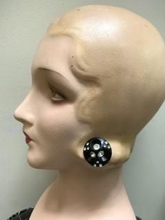 50s ドーム型 ラインストーン やや大きめ イヤリング 黒 ヴィンテージ アンティーク 1950年代