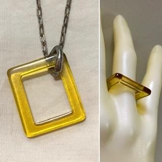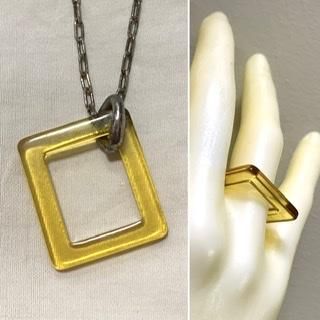 30s 40s 男女兼用 ベークライト スクエア ネックレス ペンダント クリアベークライト ヴィンテージ アクセサリー アップルジュース