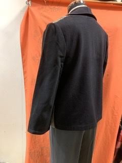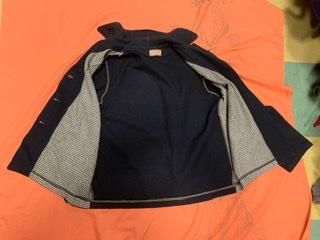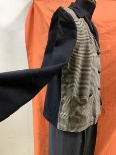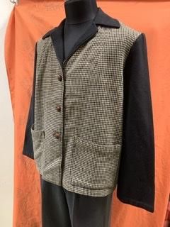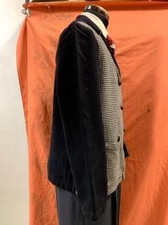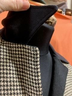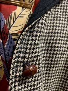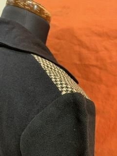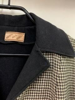 前身ごろだけ、黒白の千鳥チェックで、襟や袖、背中はブラック無地です。